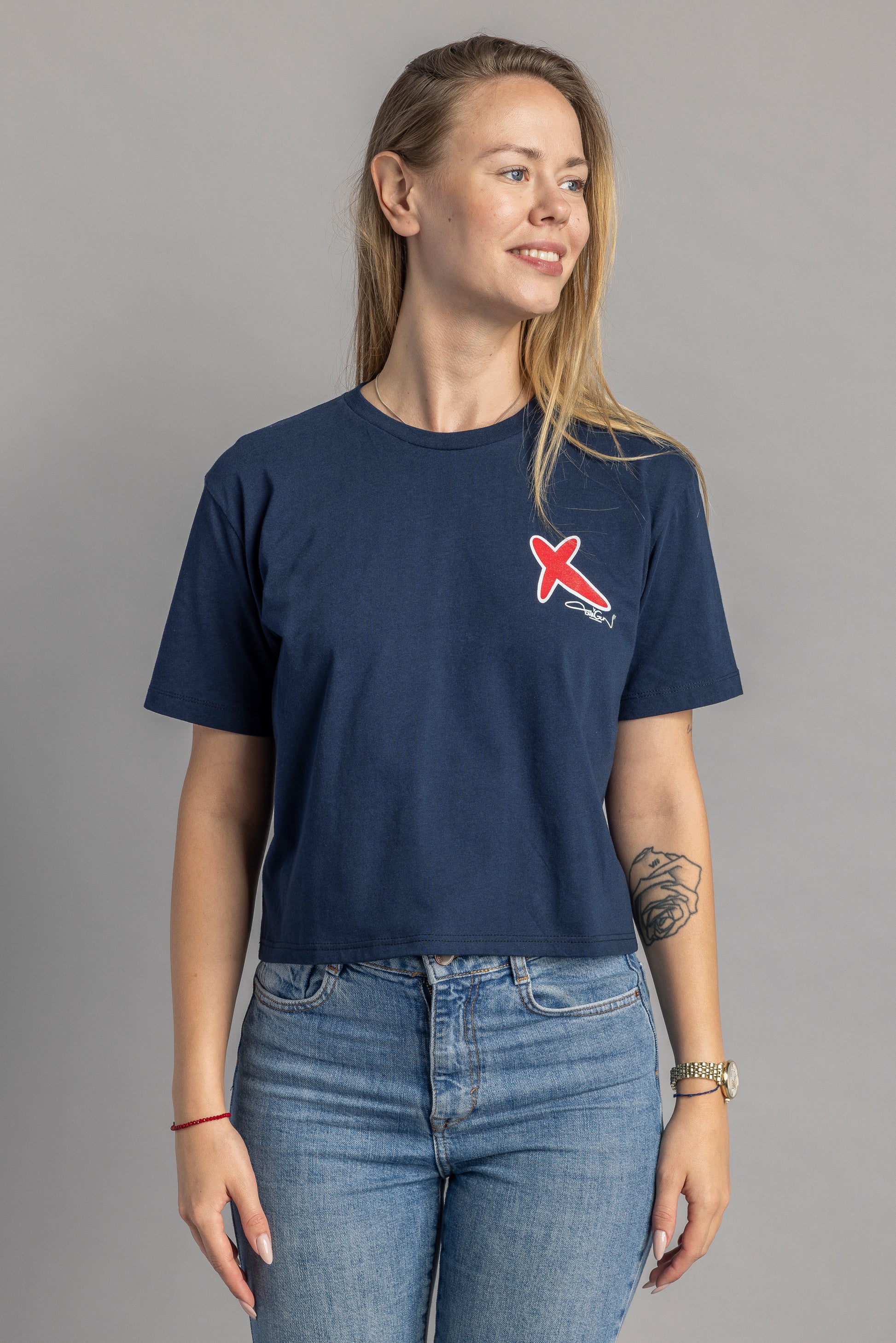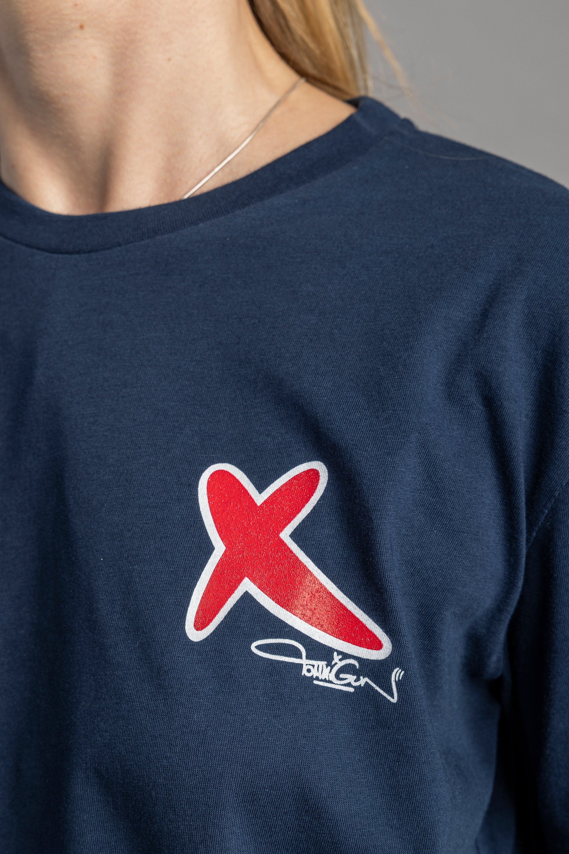 Unsere Designerin Olha hat hier aus dem Verschnitt zweier T-Shirts auf kreative Weise ein absolutes Unikat und definitives Designerstück entstehen lassen.