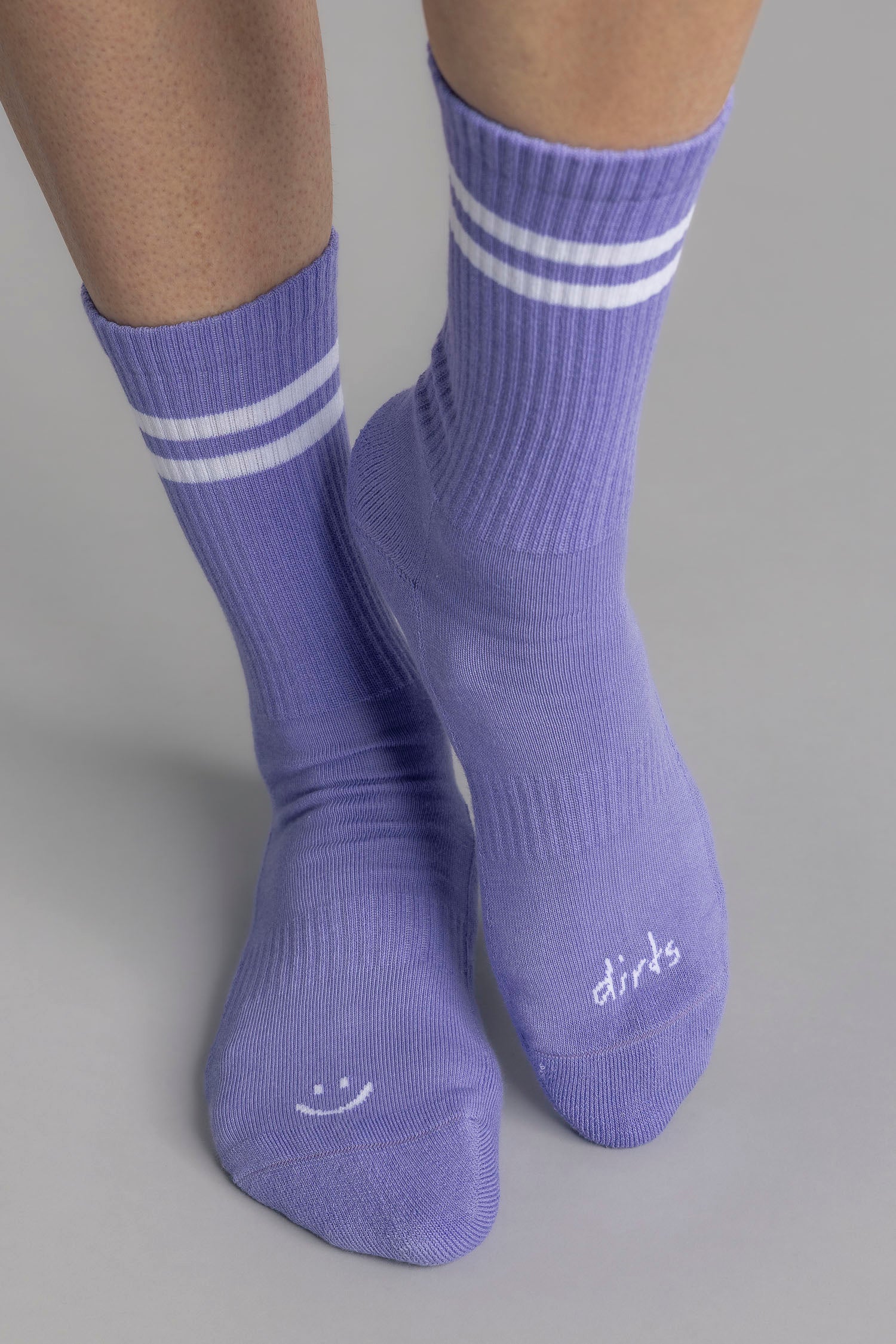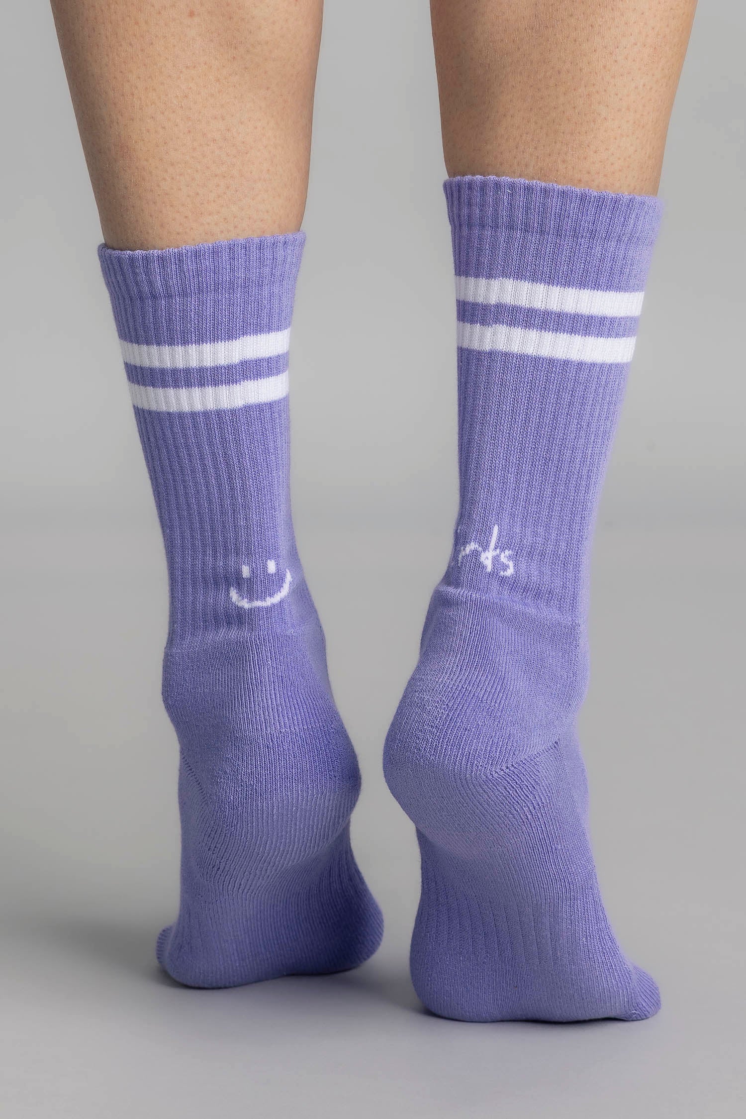 Manchmal sind es die kleinen Details, die den Unterschied machen. Unsere Happy Heel Socks in der Sommerfarbe Lavender kommen in klassischer Streifenoptik und mit einem dezenten Smiley auf Rückseite, der genau dann für ein bisschen Happiness sorgt, wenn man ihn entdeckt.
