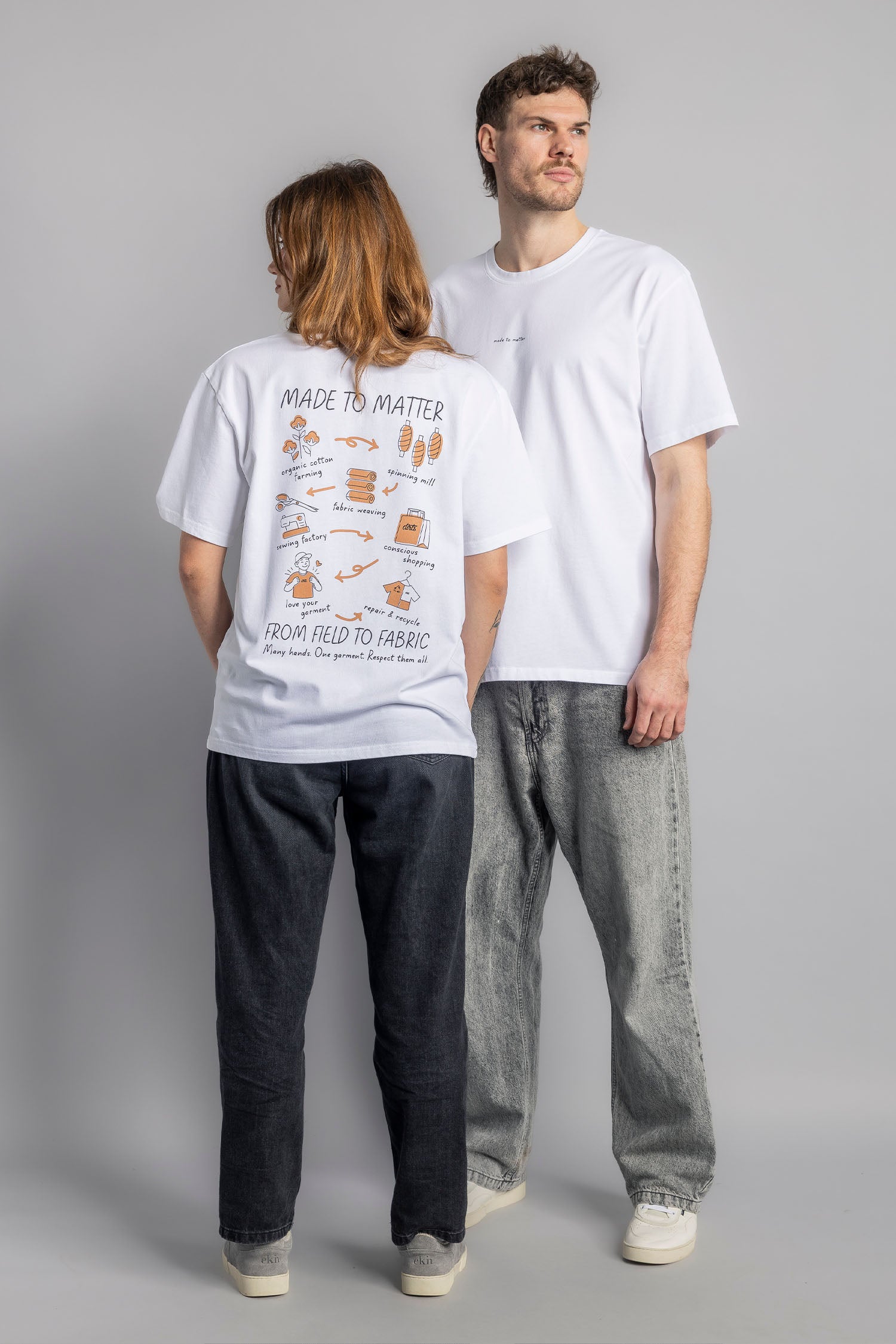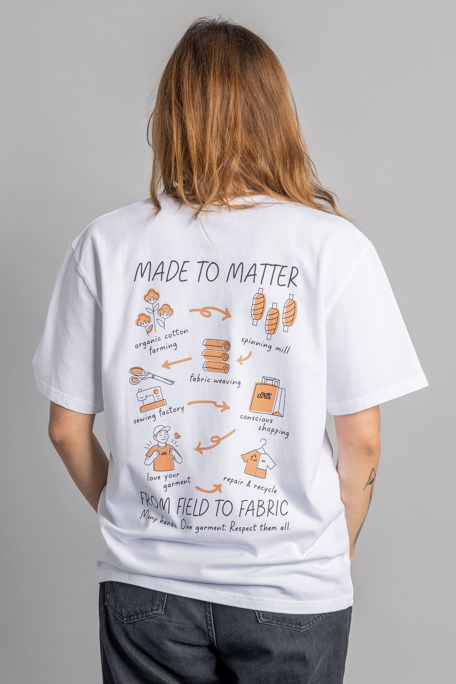 Made to Matter. Wir legen großen Wert darauf, dass wir unsere komplette Lieferkette kennen und jeden einzelne Menschen in dieser Kette respektieren. Damit auch ihr den Weg eures Kleidungsstück etwas besser nachvollziehen könnt, haben wir hier ein ganz besonderes Design kreiert.